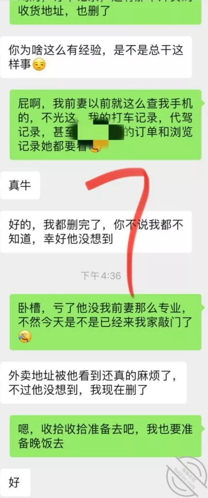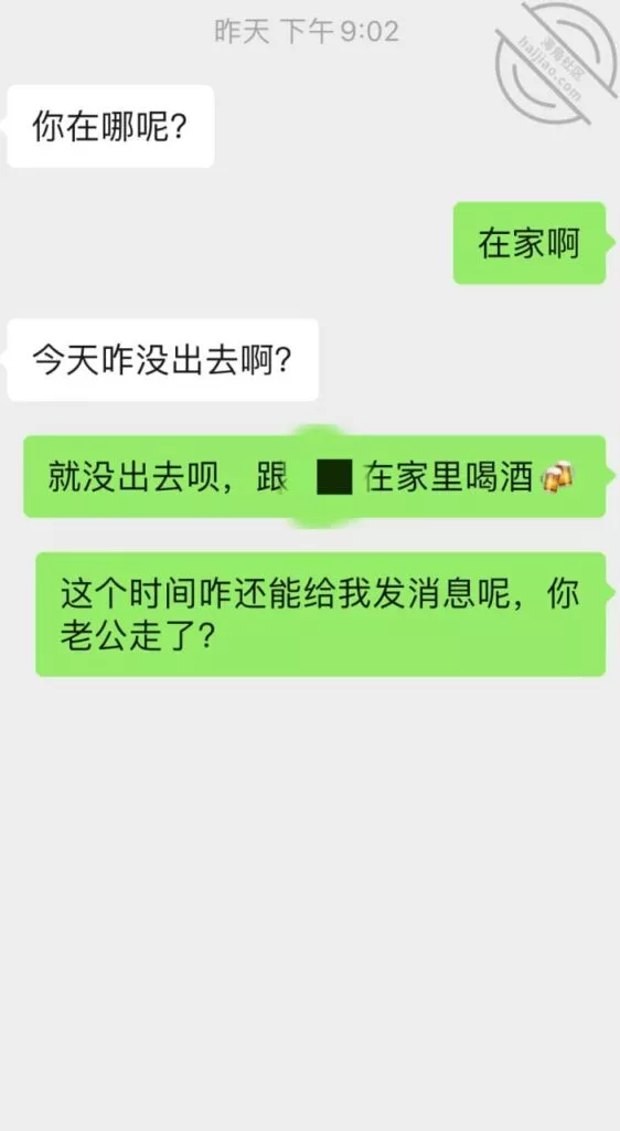 兄弟们差点出了大事啊,差点被他老公发现,幸好我们俩还都算机灵,然后她老公不算太机灵,不然可就惨了,后果不堪设想;事情是这样的,昨天她不是大早晨天刚亮就来找我Cao了一下吗,结果回去的时候她老公已经醒了,问题是她穿着睡衣出来的啊,我知道不管她怎么解释,她老公肯定是不会相信她的,现在心里肯定已经是怀疑她有人的,而且但凡有点脑子都能想到这个人肯定离得很近;先发聊天记录给大家看吧:以上就是昨天下午我俩的聊天记录了,本来昨天要发,结果呢临时有事情我要出去,才有时间登陆,兄弟们自己看吧;居然还跟踪她,这人脑子也是似乎有点不大够用,这种情况下跟踪能跟踪出个毛线啊,换了我,肯定装不知道啊,手机也不应该去查,就完全装不知道,完全相信她,叫她放松警惕,回头那不是一跟一个准啊,不过也算躲过一劫,真的要是被她老公知道我家地址,换了你们,会不会来敲门?这几天Cao不了了,还是暂且低调点吧,安全为主啊!也不知道这人啥时候走,我问她她也不知道,正好就当休息一下了。