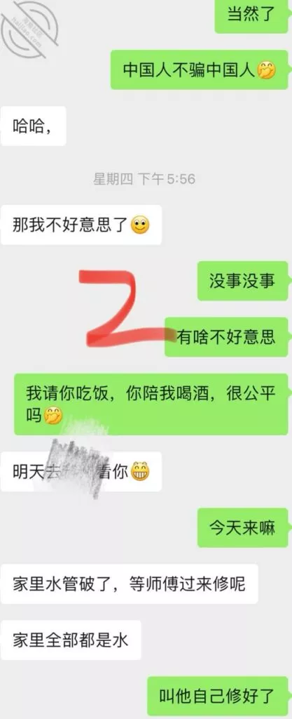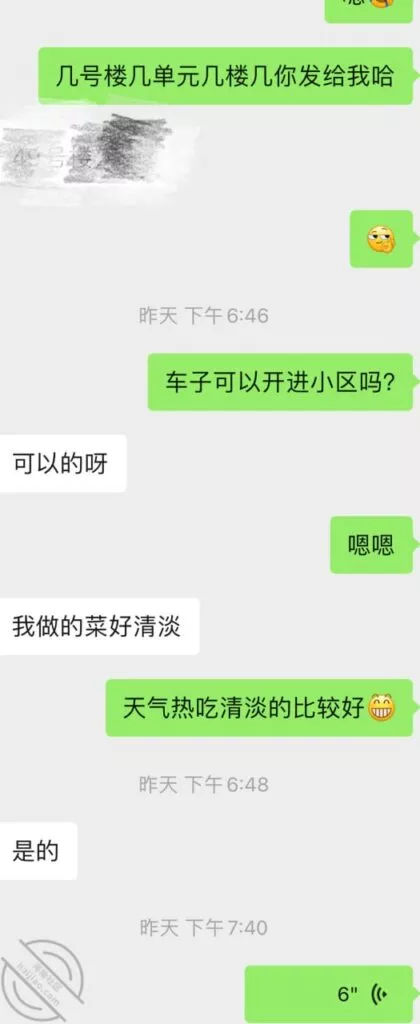 因为之前聊天有提到过我家里养了几只乌龟,就这样半推半就的被我拉着就回我家了。到家了就正常喝了点啤酒,可能时间有点晚了,她就说要回去,那我自然是不能放过的,正常的一系列Cao作,刚开始以为她是那种半推半就,没想到反抗的特别激烈,把她压在床上,连亲她都是那种紧闭牙关,我这个人,只要遇到那种比较强烈的反抗,就没想法了,甚至都硬不起来那种,而且这个女的如果他真是不想让你Cao,也很难进的去,真不知道那些QJ案都是怎么发生的,我是真的理解不了,我看当时肯定是没戏了,也就送她回去了。PS:通过中间的聊天,了解到她虽然结婚了,但是是一个人在这个城市,就在我们小区附近工作,年龄比我大2岁,最有味道的那个少妇的年纪,在聊天的过程中,知道他住的地方是几个人一起合租,不能做饭那种,我就表示我不爱吃外卖,平时都是自己做饭吃,离得也近,以后邀请他一起吃,同时也是为了下次直接约到家里见面做铺垫。不知道是酒的原因还是我有点激动上头,居然忘记拍照,手机里一个照片都没有拍,所以就发几张聊天记录给大家看看吧。